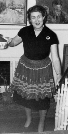 | | |  | | Knud Asger Jensen (1921-2012) | Birthe Jensen, der døde i sommeren 2009, var en institution i livet på vores veje. Hun havde sit virke ved musikken, både som klaverlærer og som primus motor i en mangeårig tradition, hvor vejenes beboere samledes til fælles sangaftener. Hendes bror, Knud Asger Jensen, har skrevet denne sang om livet på Kongedybs Alle: Melodi: Jeg ser de bøgelyse øer Jeg ser en rolig boligvej, den står mit hjerte nær, her står på rad og række de lyse lindetrær. Her er jeg født og båren, det er her jeg hører te', her føler jeg mig hjemme, i Kongedybsalle. Måske der findes steder, hvor man bor lidt mere smart, men her på vores vej kan man gå og ha' det rart. Her kender man hinanden, og man hilser og sir hej, og lindetrærne grønnes på vor beskedne vej. Vi har det lisom træerne, vi følger årets gang, når linden står på spring fejres våren med en sang. Om sommeren, når kronerne når ders fulde glans, så samles vi ved bålet og synger om St. Hans. Ved juletid står stammerne som nøgne vintergys, så laver vi dem om til et kæmpejulelys. Vi håber, lisom træerne, vi solen snart må se, når atter det blir forår i Kongedybsalle. Nu har vor vej bestået i snart mer end hundred år, den vidner om de slægter, som kommer og som går. Men lindene forbliver, de er tro i bund og grund, med tiden skal de blive vor linde-mindelund. (Klik her, hvis du vil hente sangen som pdf-fil) Du kan høre Thorvald Aagaards (1877-1937) oprindelige melodi her (i IE): | |